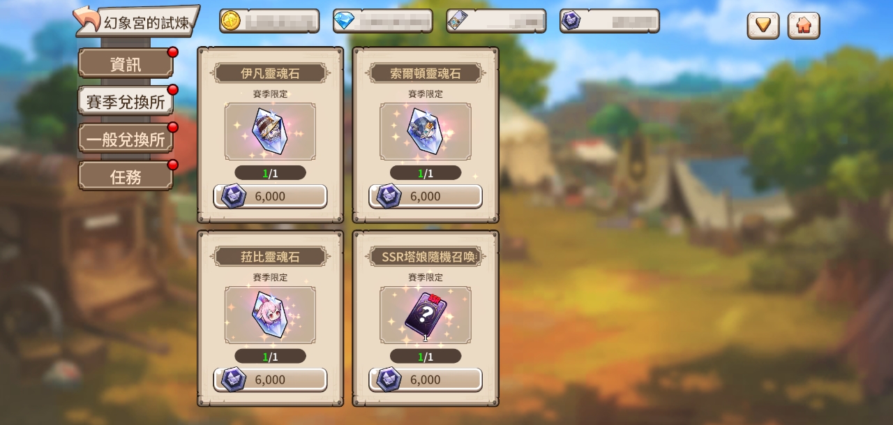 每個賽季的賽季兌換所將會隨機推出塔娘的靈魂石以及SSR塔娘隨機召喚券